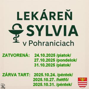 OZNAM LEKÁRNE SYLVIA - A SYLVIA GYÓGYSZERTÁR ÉRTESÍTI
