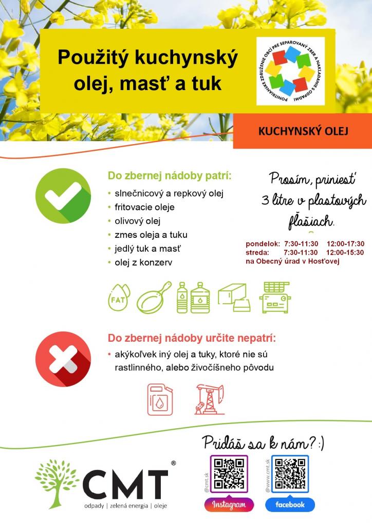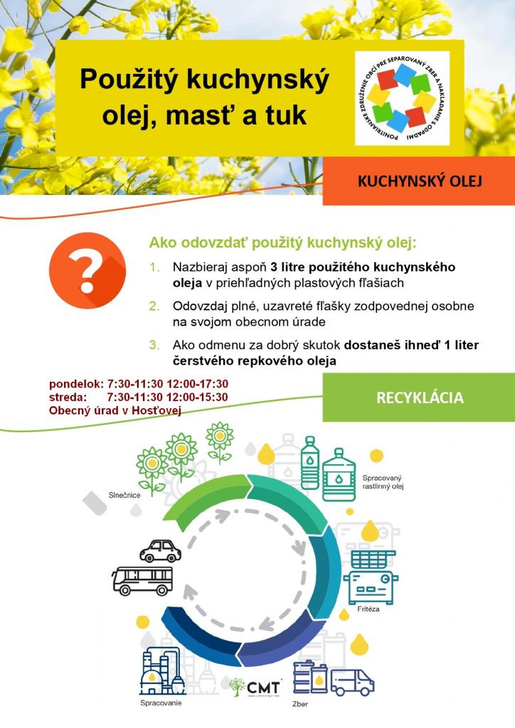 Použitý kuchynský olej určený na výmenu môžete odovzdať na obecnom úrade v týchto dňoch: