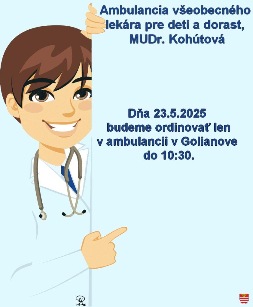 OZNAM - AMBULANCIA PRE DETI A DORAST POHRANICE ÉRTESÍTÉS - GYERMEK ÉS IFJÚSÁGI RENDELŐ POGRÁNY