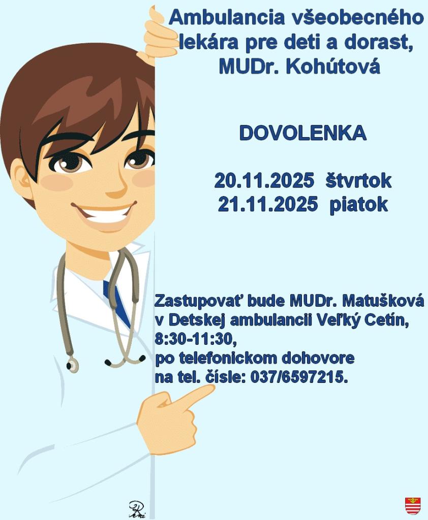 OZNAM - AMBULANCIA PRE DETI A DORAST POHRANICE - ÉRTESÍTÉS - GYERMEK ÉS IFJÚSÁGI RENDELŐ POGRÁNY