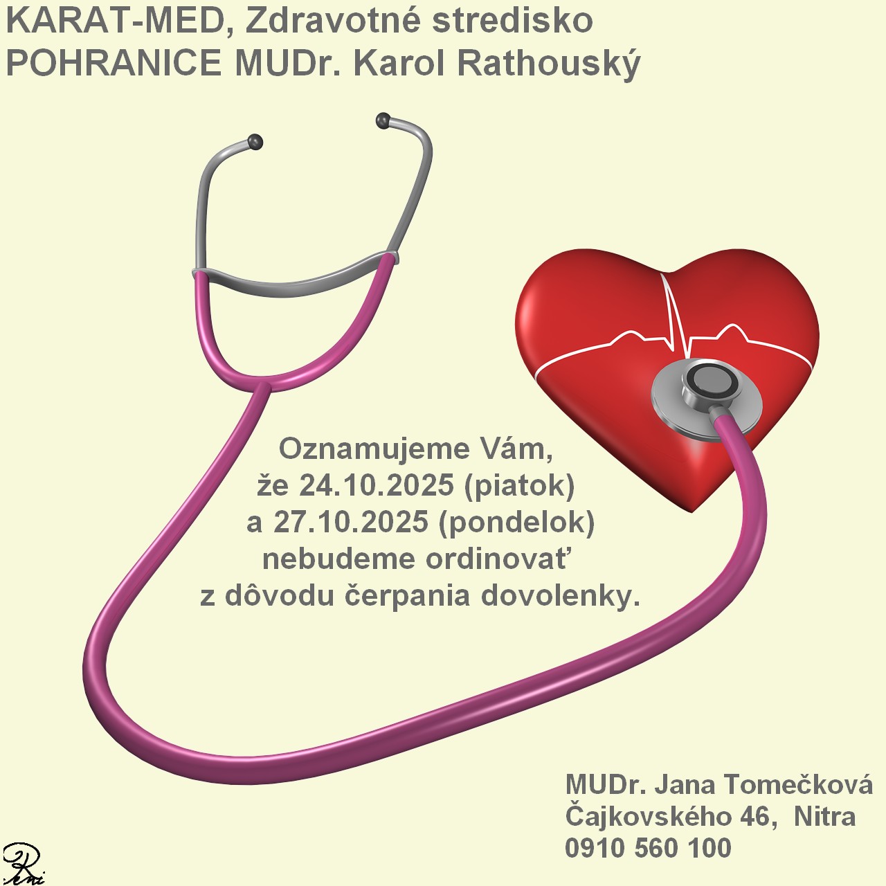 ÉRTESÍTÉS MUDr. RAUHOUSKÝ