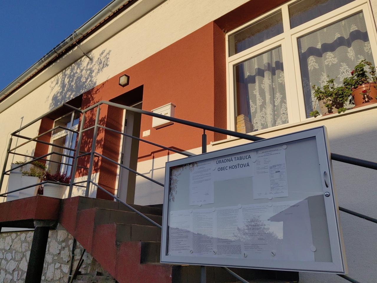 Oznamujeme občanom, že z dôvodu rekonštrukcie budovy kultúrneho domu je úradná tabuľa Obce Hosťová dočasne premiestnená pri vchod obecného úradu. /viď foto/