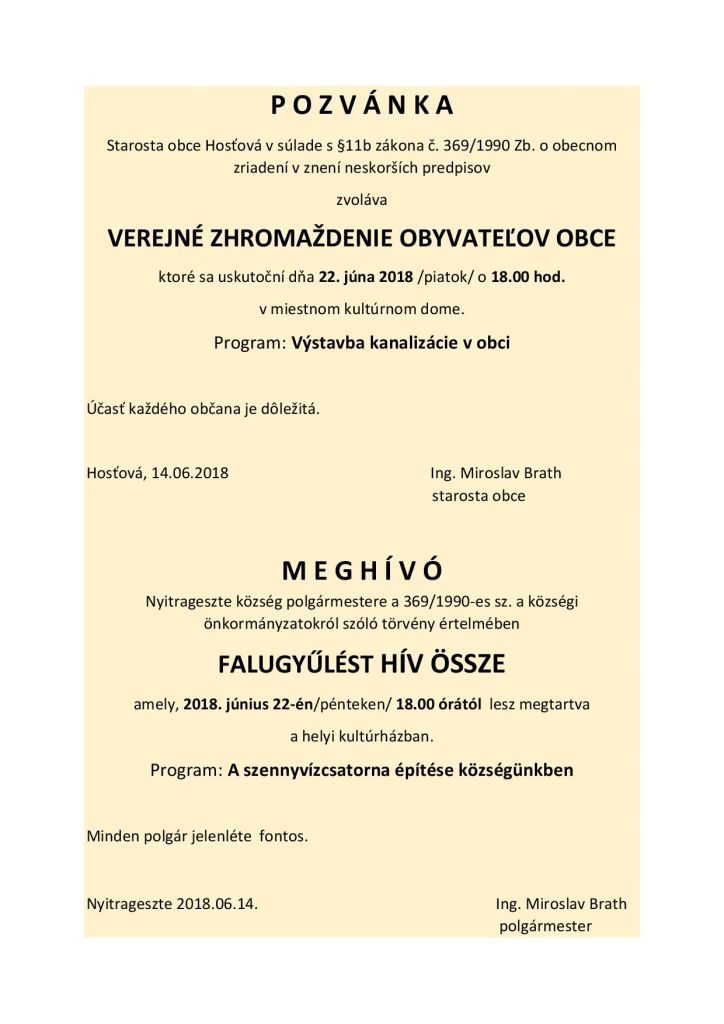 POZVÁNKA NA VEREJNÉ ZHROMAŽDENIE - MEGHÍVÓ FALUGYŰLÉSRE