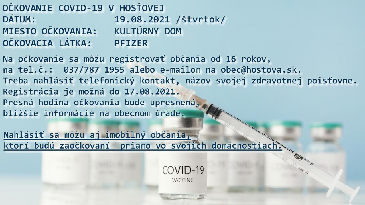SK: OČKOVANIE COVID-19 HOSŤOVÁ