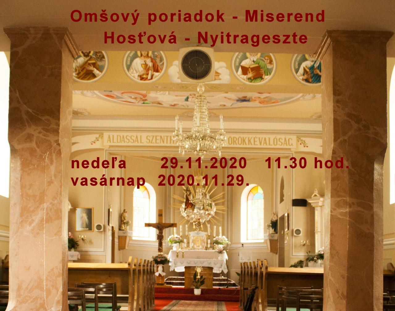 SK: OMŠOVÝ PORIADOK 23.11. - 29.11.2020 HU: MISEREND 2020.11.23. - 11.29.11..