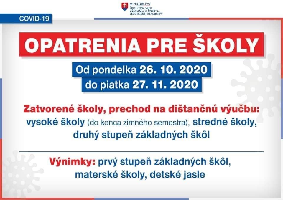 SK: OPATRENIA PRE ŠKOLY OD 26.10.2020