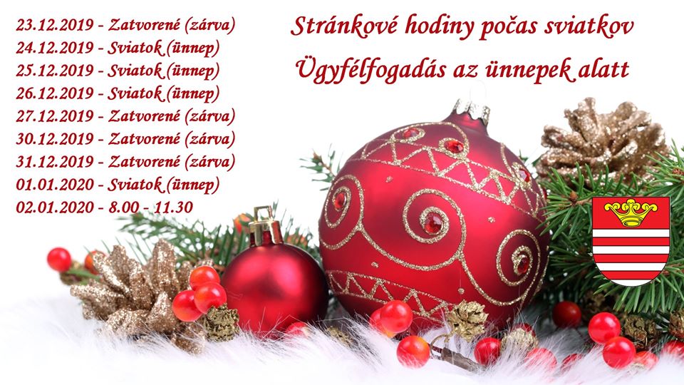 SK: STRÁNKOVÉ HODINY POČAS SVIATKOV - HU: ÜGYFÉLFOGADÁS AZ ÜNNEPEK ALATT