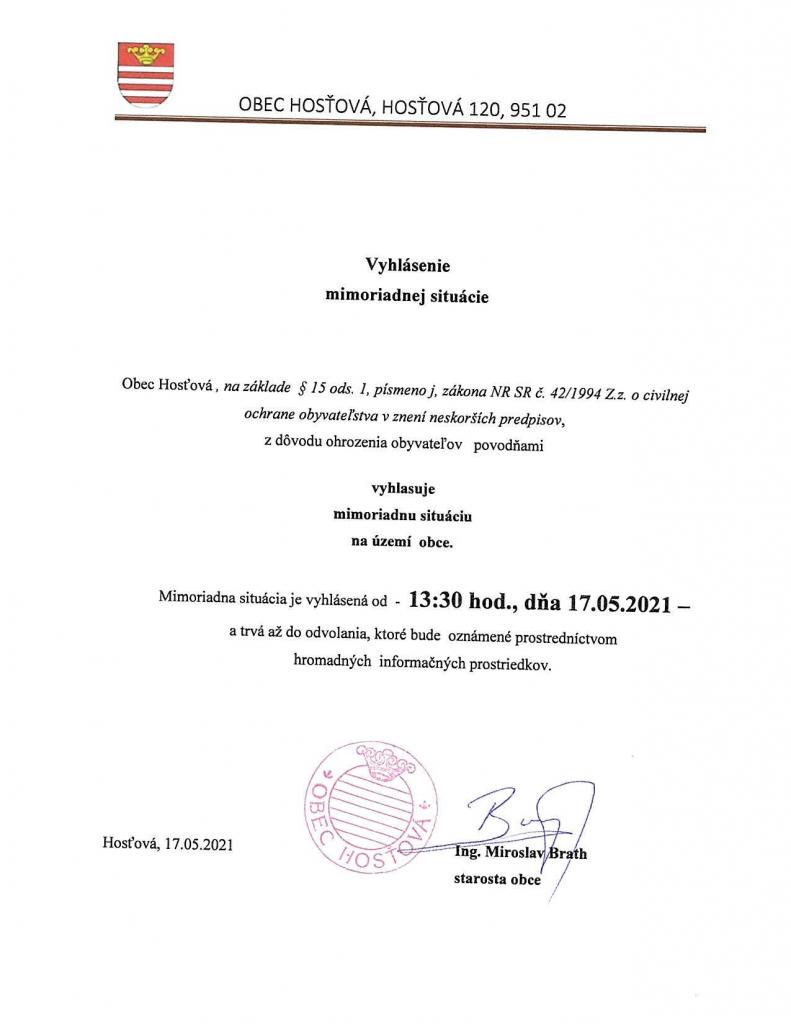 SK: VYHLÁSENIE MIMORIADNEJ SITUÁCIE