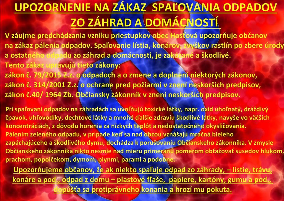 SK: ZÁKAZ PÁLENIA ODPADOV