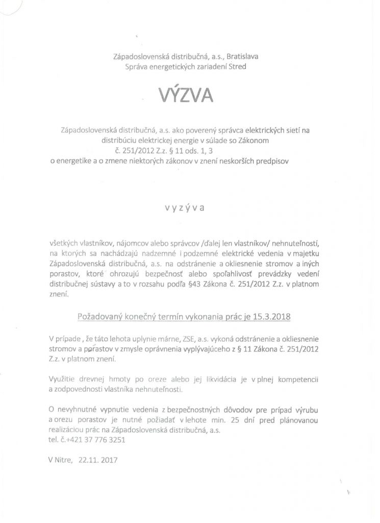 VÝZVA NA ODSTRÁNENIE A OKLIESNENIE...