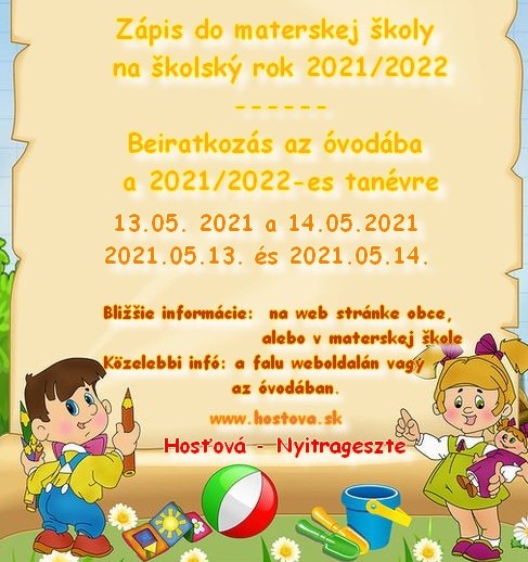 ZÁPIS DO MATERSKEJ ŠKOLY - BEIRATKOZÁS AZ ÓVODÁBA