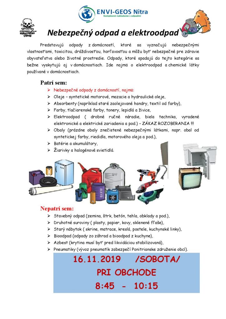ZBER NEBEZPEČNÉHO ODPADU A ELEKTROODPADU - VESZÉLYES ÉS ELEKTRO HULLADÉK GYŰJTÉSE